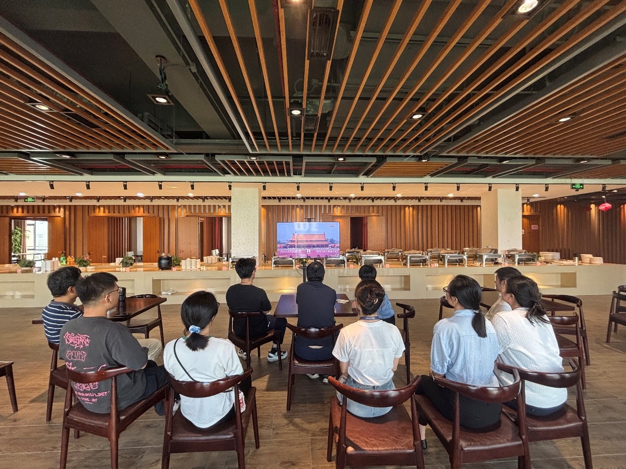 此次九三閱兵式,上海高研院在四個園區(qū)內(nèi)設置了七個視頻播放點,全院干部職工自發(fā)響應、同步觀禮。當受閱方陣以整齊劃一的陣型展示尖端國防裝備時,科技工作者們深切感受到“大國重器”背后的科技支撐力量,更加堅定了突破“卡脖子”技術的決心,激發(fā)了將愛國情懷轉(zhuǎn)化為科技創(chuàng)新的自覺,現(xiàn)場不時爆發(fā)出熱烈掌聲。