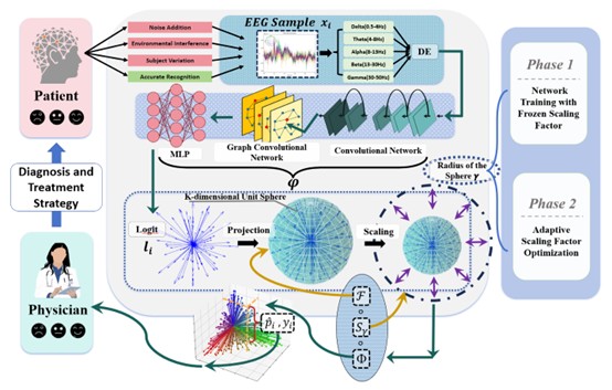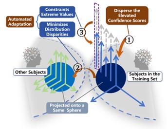 針對(duì)該痛點(diǎn),中國(guó)科學(xué)院上海高等研究院(以下簡(jiǎn)稱“上海高研院”)智能信息中心下一代移動(dòng)通信網(wǎng)絡(luò)團(tuán)隊(duì)提出首個(gè)情感腦機(jī)接口的可信度估計(jì)框架,從而實(shí)現(xiàn)情感腦機(jī)接口決策風(fēng)險(xiǎn)的全面即時(shí)評(píng)估,為醫(yī)療專家提供關(guān)于系統(tǒng)可信度的決策支持。該框架采取投影算子(Projection Operator)、縮放算子(Scaling Operator)與分類輸出層的深度耦合架構(gòu)。其中,投影算子對(duì)潛在情感特征空間動(dòng)態(tài)遷移,適應(yīng)不同受試者間的個(gè)體及跨場(chǎng)景分布差異,增強(qiáng)所提框架在復(fù)雜應(yīng)用下的泛化能力與抗噪穩(wěn)健性;縮放算子從全局修正普遍存在的風(fēng)險(xiǎn)估計(jì)偏差,并通過優(yōu)化可信度分?jǐn)?shù)分布結(jié)構(gòu),對(duì)齊預(yù)測(cè)可信性與系統(tǒng)實(shí)際風(fēng)險(xiǎn)之間的深層映射。雙算子協(xié)同作用,實(shí)現(xiàn)現(xiàn)實(shí)分布偏移語境下的aBCI可信度魯棒估計(jì);理論推導(dǎo)證明所提估計(jì)器為最大熵原理下的唯一解,具有信息熵意義下的最優(yōu)一致性與可解釋性。在 SEED 與 SEED-IV 兩個(gè)情感 EEG 數(shù)據(jù)集上的評(píng)估顯示,所提框架在可信性估計(jì)精度、跨個(gè)體泛化能力及異常狀態(tài)識(shí)別敏感性三個(gè)方面均顯著優(yōu)于現(xiàn)有風(fēng)險(xiǎn)評(píng)估方法。相關(guān)研究成果以 Enhancing the Reliability of Affective Brain-Computer Interfaces by Using Specifically Designed Confidence Estimator 為題,發(fā)表于計(jì)算生物學(xué)領(lǐng)域期刊IEEE Journal of Biomedical and Health Informatics。該研究有望構(gòu)建腦機(jī)接口可信度建模與風(fēng)險(xiǎn)控制的基石性理論,推動(dòng)情感腦機(jī)接口由單一性能導(dǎo)向轉(zhuǎn)變?yōu)榧骖櫩尚判缘木C合導(dǎo)向,并為 aBCI 在疾病診療、心理健康管理及公共安全監(jiān)測(cè)等現(xiàn)實(shí)應(yīng)用場(chǎng)景中的安全部署提供堅(jiān)實(shí)技術(shù)保障。