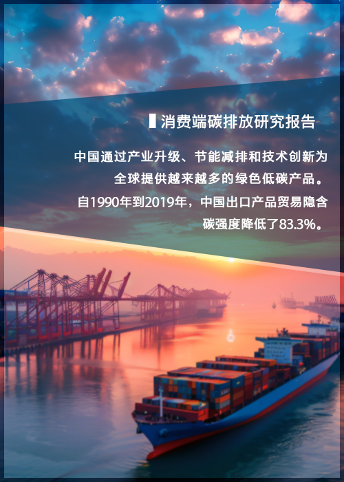 《研究報告》顯示,1990~2019年間,中國消費端碳排放始終低于生產(chǎn)端碳排放,生產(chǎn)端和消費端碳排放差值由1990年的7.0億噸增加到2019年的18.0億噸。中國出口貿(mào)易隱含碳強度降低83.3%,為全球提供更多的綠色低碳產(chǎn)品。2021年,中國因鋼鐵原材料產(chǎn)品貿(mào)易為其他國家承擔的二氧化碳凈排放量達1.0億噸,因光伏產(chǎn)品貿(mào)易為其他國家承擔的二氧化碳凈排放量達2.5億噸。