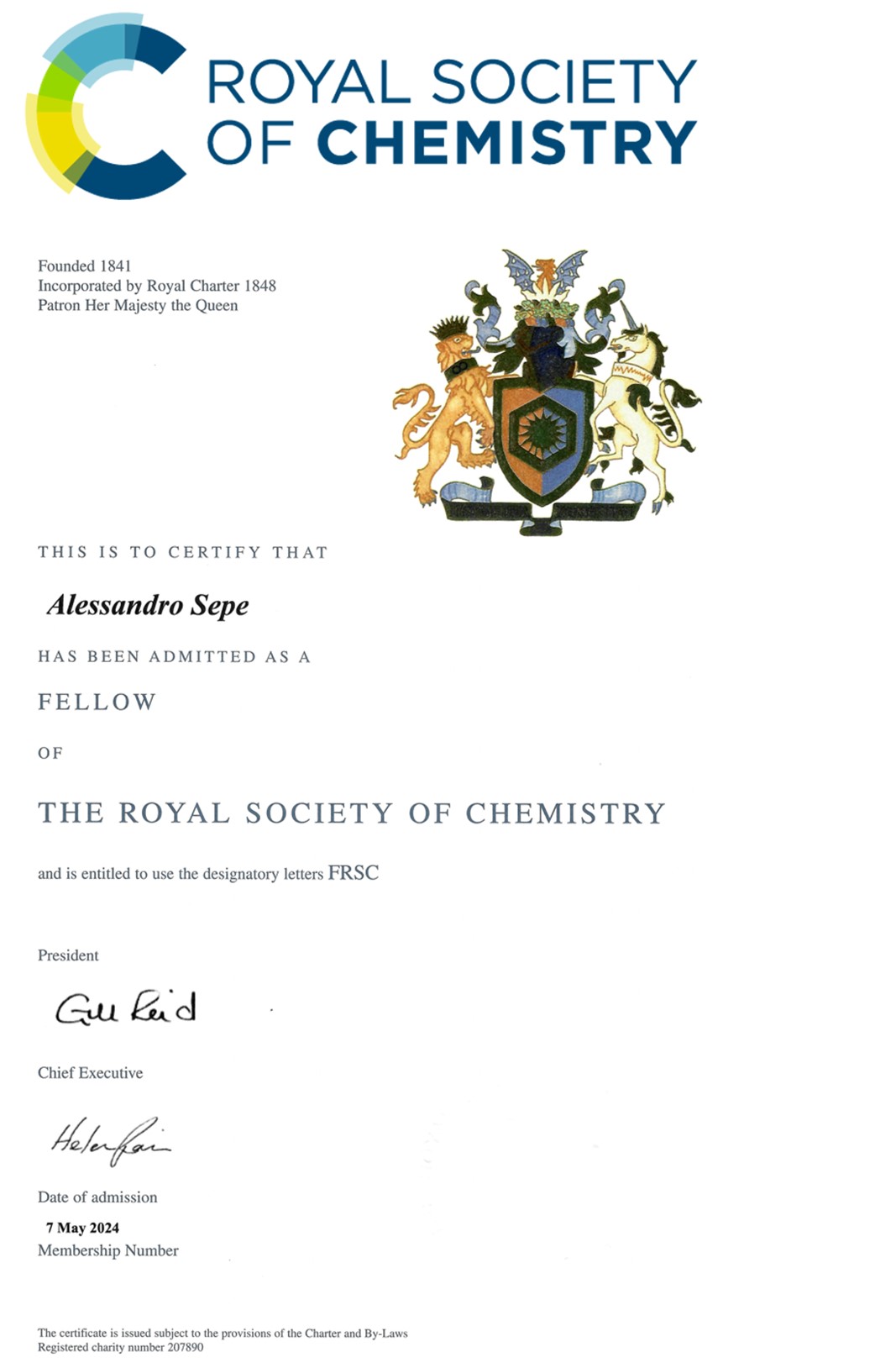 上海高研院Alessandro Sepe研究員當(dāng)選為英國(guó)皇家化學(xué)會(huì)會(huì)士