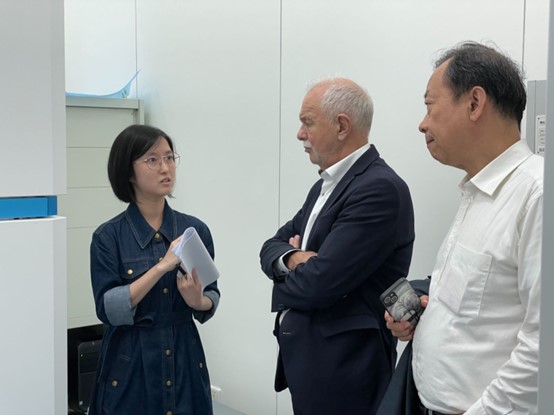 隨后,來訪嘉賓參觀了蛋白質(zhì)設(shè)施質(zhì)譜分析系統(tǒng)、核磁分析系統(tǒng)和電鏡分析系統(tǒng),并與系統(tǒng)負(fù)責(zé)人和工程師進行了密切交流。最后,Mlynek教授邀請蛋白質(zhì)設(shè)施優(yōu)秀科研人員參加德方基金會每年在柏林11月初定期主辦的“全球科技創(chuàng)新年度大賽”,并期待后續(xù)能與蛋白質(zhì)設(shè)施有越來越多的國際交流合作。