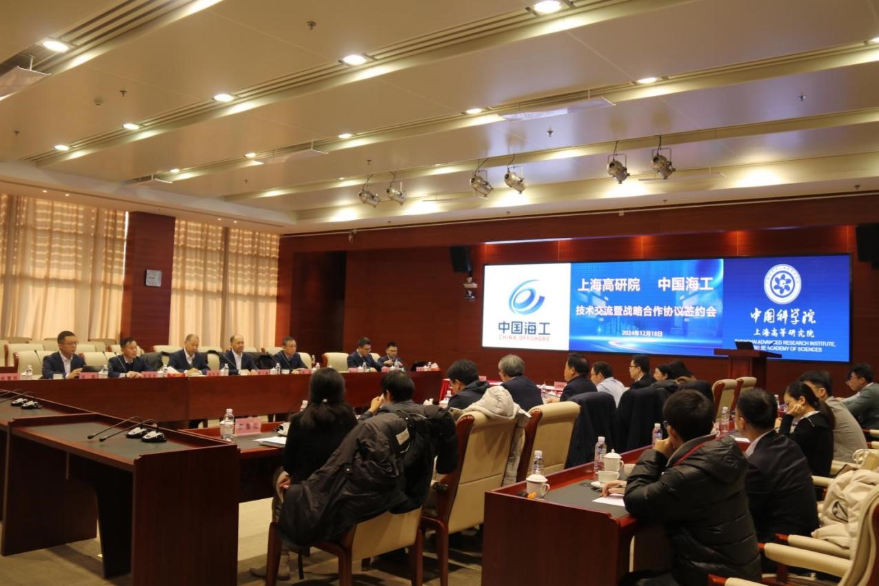 2024年12月18日,中國海洋工程裝備技術(shù)發(fā)展有限公司(簡稱“中國海工”)總經(jīng)理李小巍與副總經(jīng)理姚軍一行到中國科學(xué)院上海高等研究院(簡稱“高研院”)進(jìn)行技術(shù)交流,并共同簽署了戰(zhàn)略合作協(xié)議。高研院院長黃政仁、副院長魏偉等領(lǐng)導(dǎo)出席了簽約儀式及相關(guān)會議,雙方相關(guān)科研人員和部門負(fù)責(zé)人參與了此次交流活動。