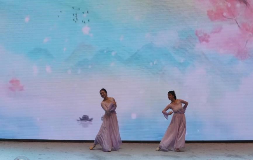 高研院凌云芳妍舞蹈社帶來美輪美奐的舞蹈《水月云?!?,她們的舞步如流水柔和,又似云煙縹緲,將山水云月娓娓道來。