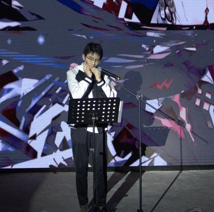 晚會第二樂章“元韻·逸華章”在口琴獨(dú)奏《Departures》中緩緩開啟,高研院的陳前宇同學(xué),向我們展示了口琴演奏的獨(dú)特魅力。
